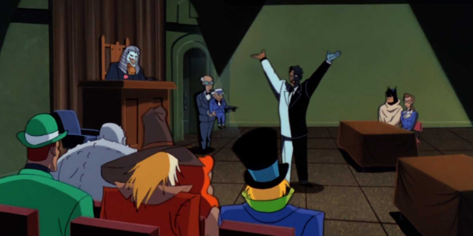 Эпизод Batman: The Animated Series ‘Trial’ широко считается одним из самых интеллектуальных. Он отличается уникальной предпосылкой: Бэтмен предстаёт перед судом внутри психиатрической лечебницы Аркхем, где его враги выступают в роли как судей, так и обвинителей. Во время суда каждый злодей утверждает, что Бэтмен несёт ответственность за их существование, что приводит к заставляющей задуматься дискуссии об ответственности и природе безумия.