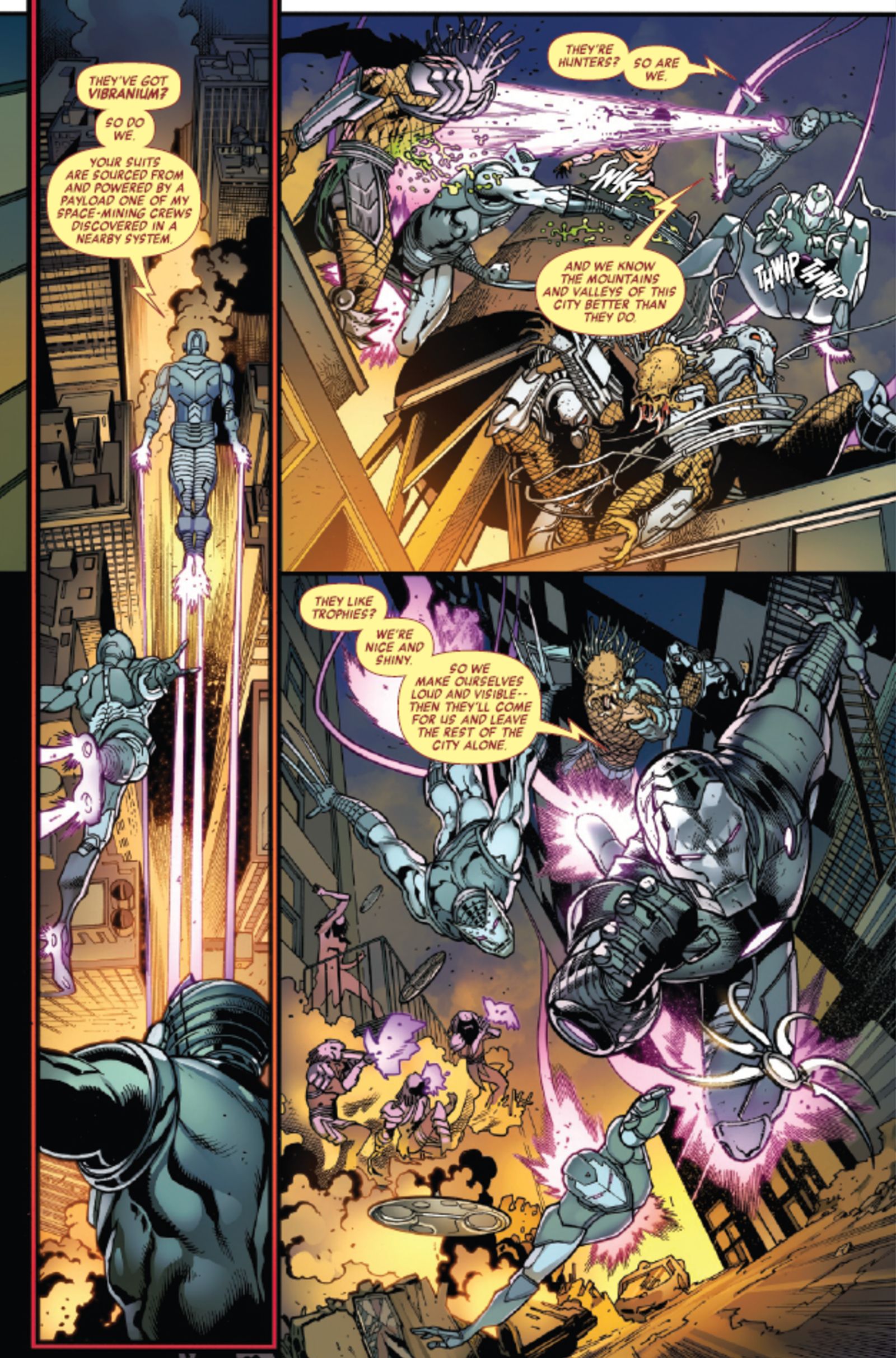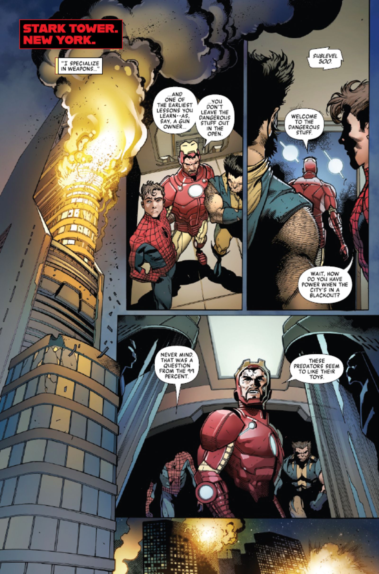 Собрать свою командуОкей, я только что посмотрел превью Predator Kills the Marvel Universe #5, и это напряжённо! Оно начинается с Тони Старка, Человека-паука и Росомахи, входящих в лабораторию внутри горящей Башни Старка – да, дела плохи. Тони, по сути, экипирует всех в броню Железного человека, и похоже, что этого может быть достаточно, чтобы начать побеждать Крэйвена и всех Хищников, которых он с собой притащил. Это крутая завязка, и мне очень интересно, сработает ли это!