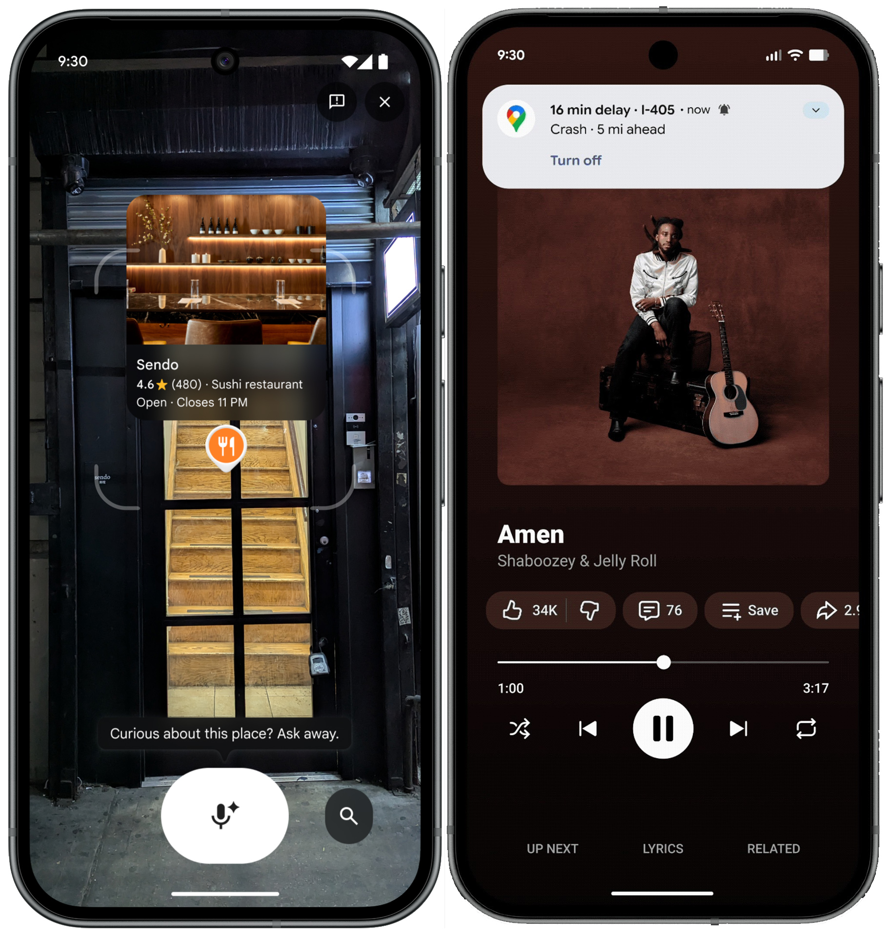 Gemini полагается не только на расстояния, чтобы направлять вас на поворотах. Он может использовать ориентиры, такие как заправки, рестораны или знакомые вывески, чтобы помочь вам узнать, когда поворачивать. Google утверждает, что эта точность достигается благодаря его огромной базе данных мест, в сочетании с изображениями Street View. Кроме того, Gemini может предупреждать вас о задержках движения по вашему маршруту, даже если вы не активно используете приложение Maps.