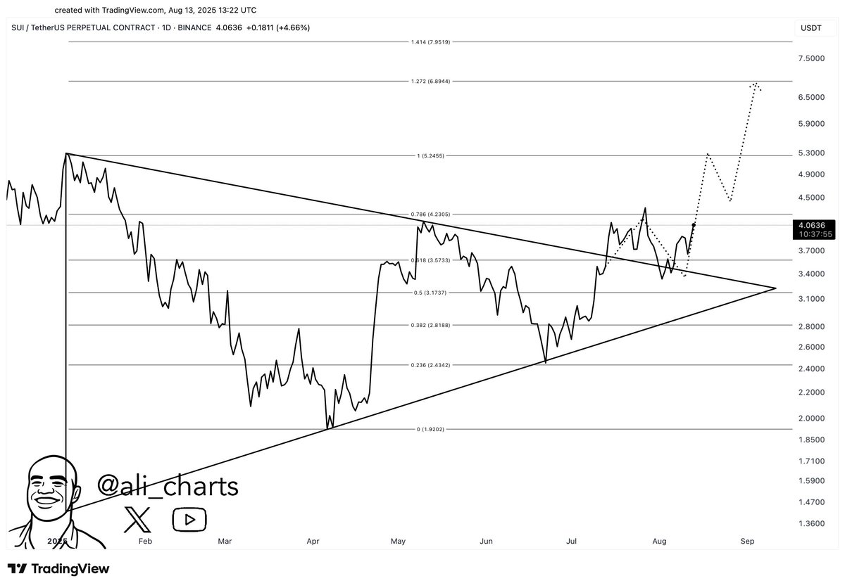 В заключение, у нас есть Sui (SUI), который может почти удвоить свою текущую стоимость после повторного тестирования уровня пробоя симметричного треугольника. Симметричный? Я даже не могу поддерживать симметрию в своей жизни! 😅