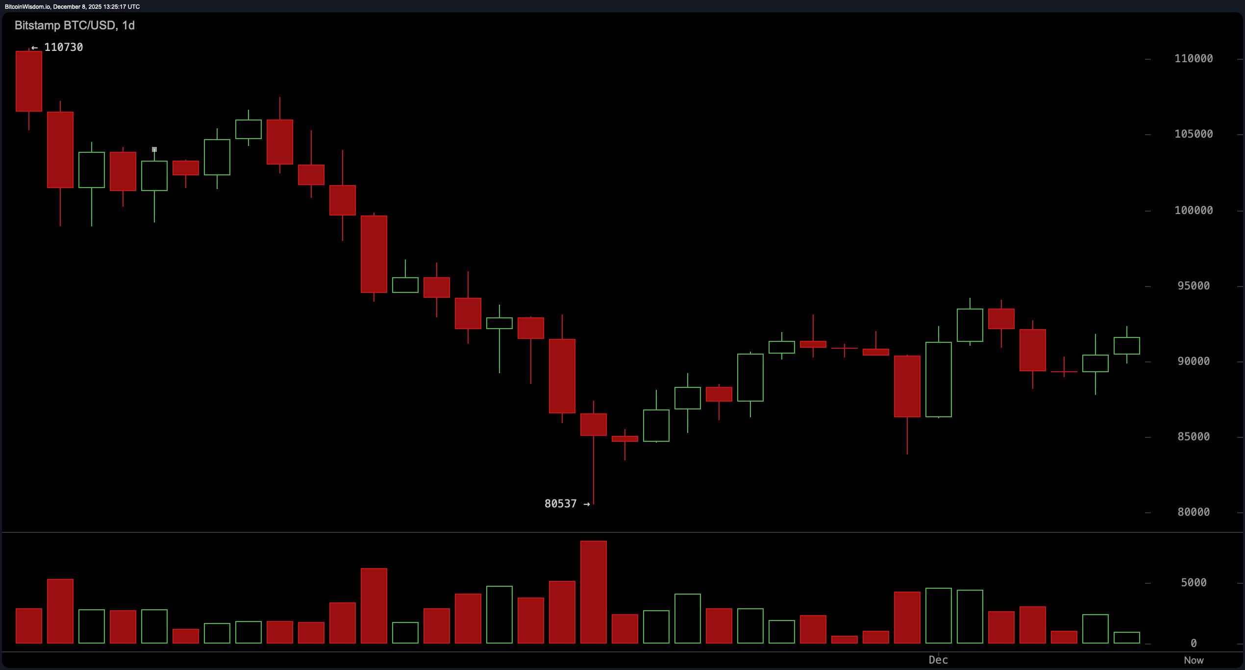 Биткоин, это изменчивое создание, вновь поймал сердца трейдеров в танго восторга и отчаяния. Со своей высокой позиции шестизначных чисел он рухнул до 80 537 долларов, только чтобы с упорством мотылька, бросающегося в пламя, отвоевать путь обратно к 92 000 долларов. Однако этот отскок — проблеск надежды — остается привязанным к медвежьим объятиям дневного графика, как мечтатель, цепляющийся за тонущий корабль.
