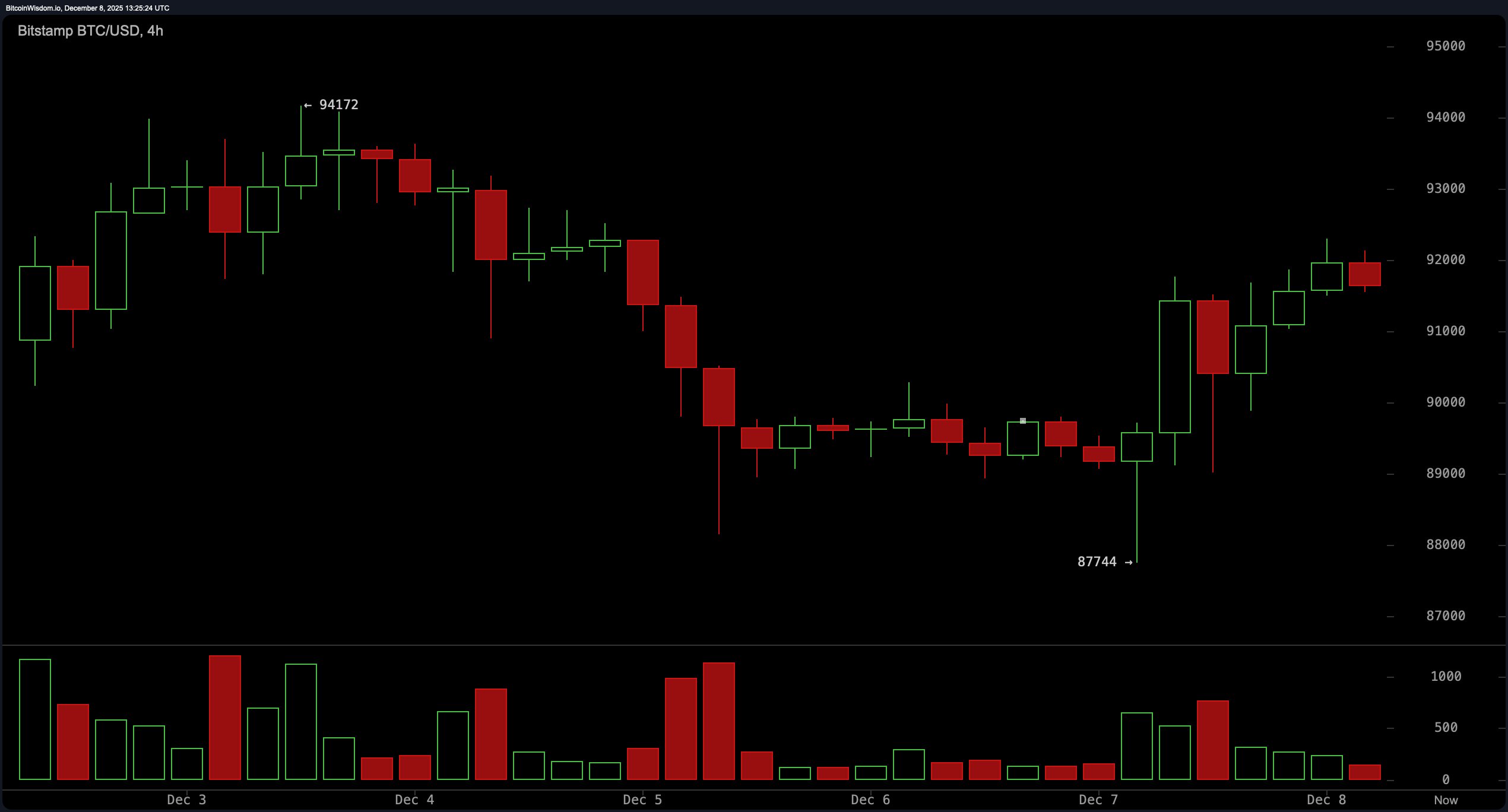 Биткоин танцует на отметке $91,808 по состоянию на 8 декабря 2025 года. - Биткоин сейчас в восходящем тренде?