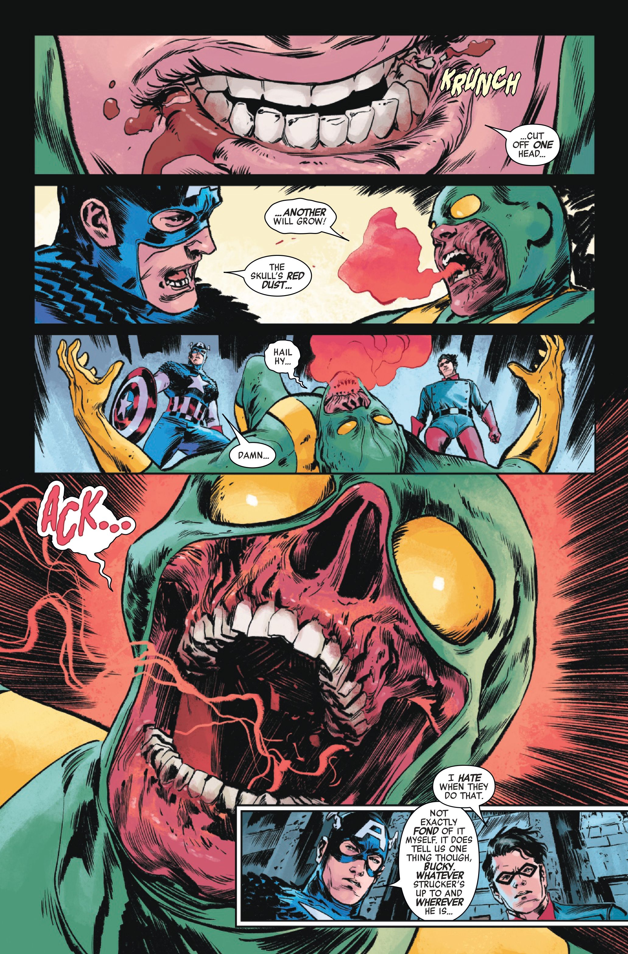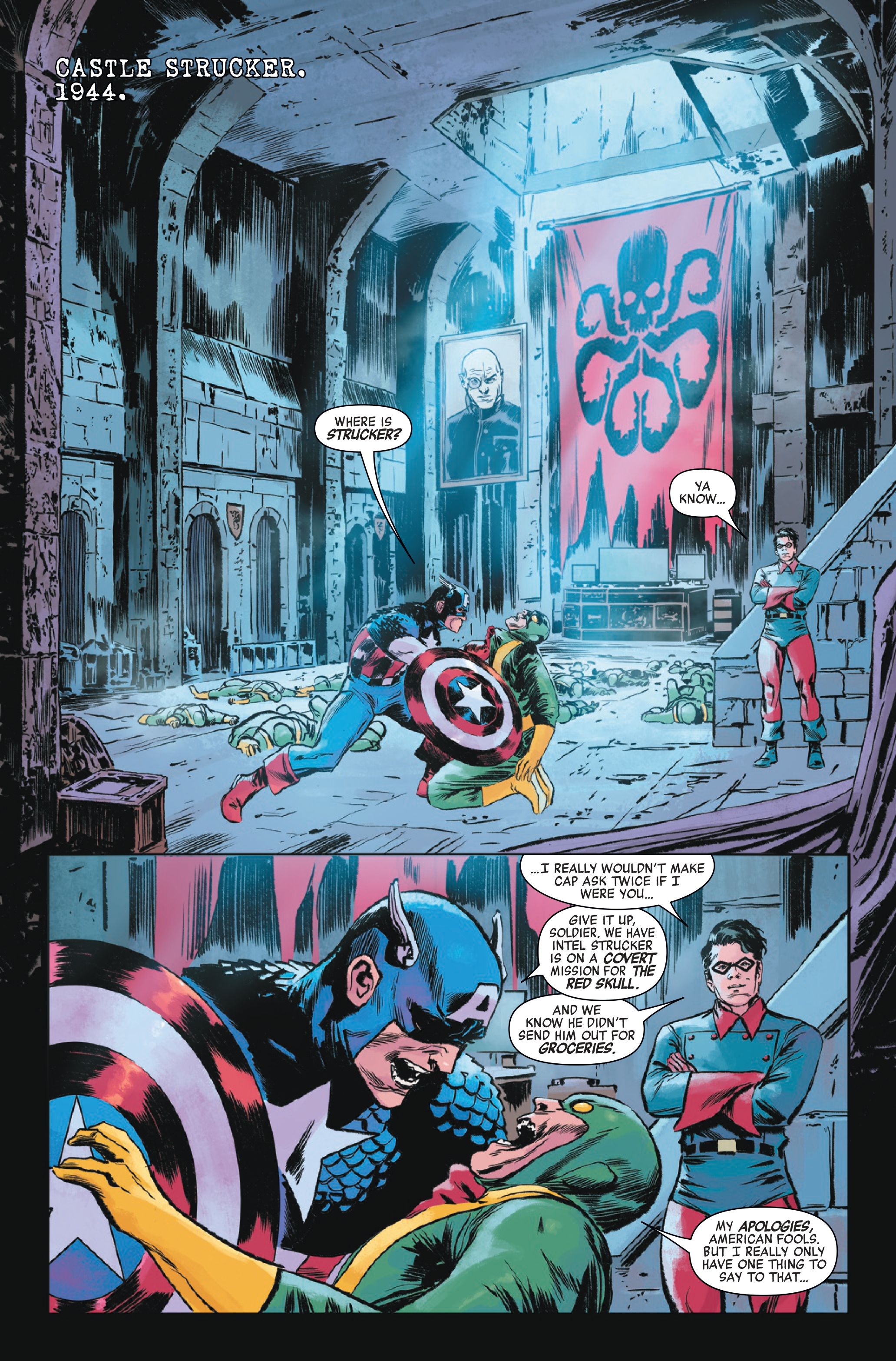 Страницы превью показывают Капитана Америку и Баки, совершающих рейд на замок Стракера, чтобы захватить барона Стракера, классического злодея Marvel, созданного Джеком Кирби и Станом Ли. Они изобретательно представили Стракера (и других), сначала показав его сражающимся с Ником Фьюри во время Второй мировой войны в комиксе Sgt. Fury and his Howling Commandos, а затем позже вновь представив его в наши дни как угрозу другого рода. Например, если во время войны он был нацистом, то в современности он работает с Гидрой, опасным врагом Щ.И.Т. – подобно тому, как барон Земо возглавляет Мастеров Зла.