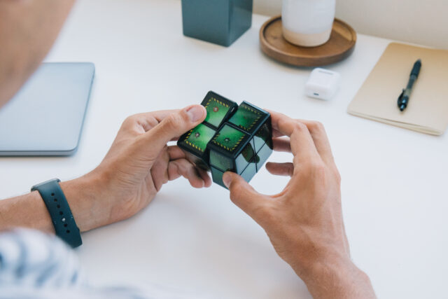 Вместо того, чтобы быть покрытым наклейкой одного цвета, эта игрушка оснащена 24 отдельными экранами – каждый из которых представляет собой IPS-дисплей с разрешением 240×240 – расположенными в кубе. Куб состоит из восьми отдельных частей, которые компания называет «модули кубиков» (cubicle modules). Каждый модуль содержит три таких экрана, а также свой выделенный процессор.