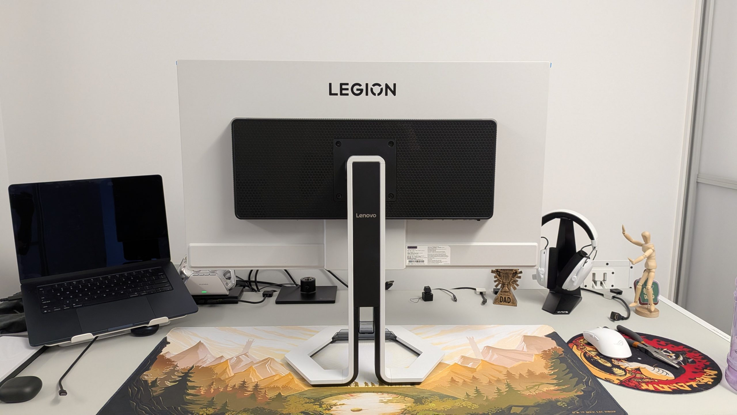 Включенная в комплект подставка Lenovo – с ее отличительным шестиугольным основанием и слотом для телефонов или планшетов – вернулась. Она предлагает широкий спектр регулировок, позволяя легко поднимать, наклонять, поворачивать и вращать экран, а также аккуратно организовывать кабели. Однако слот для телефона, хотя и стильный, я не обнаружил, что часто им пользовался. Если поднять экран слишком высоко, вы не сможете установить телефон вертикально, а положить его боком в слот не имеет особого смысла. Небольшой планшет может подойти лучше, но у меня его нет, чтобы проверить эту идею.