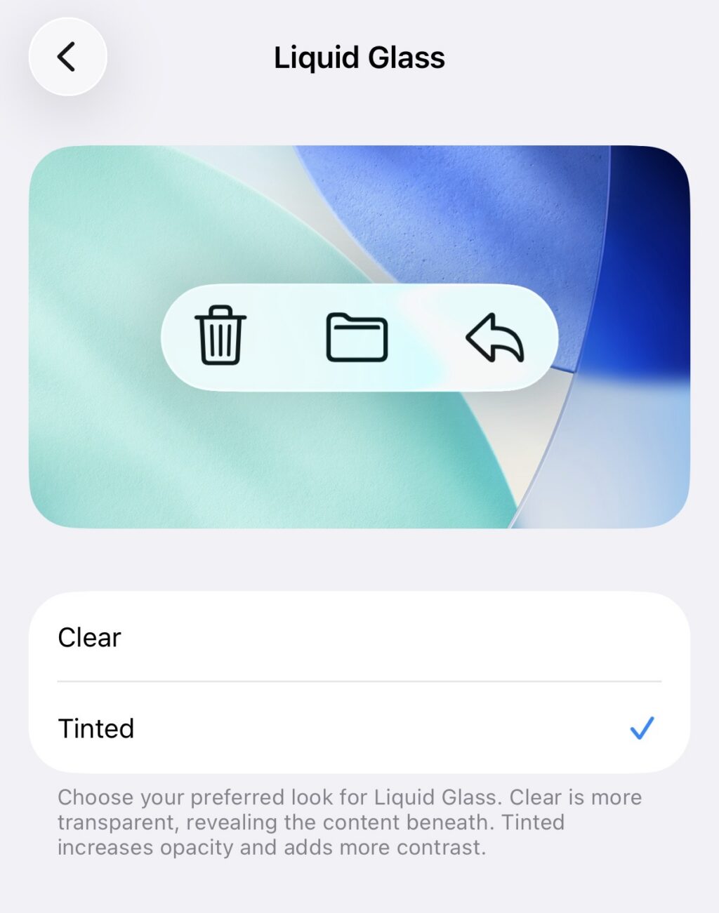 Найти недооцененные активыСледующее обновление, версия 26.1, устранит некоторые отзывы пользователей относительно Liquid Glass. Вместо изменения внешнего вида по умолчанию, оно вводит простой переключатель, позволяющий выбрать между двумя вариантами: ‘Clear’ (оригинальный) и ‘Tinted’, который делает Liquid Glass темнее и более четким.