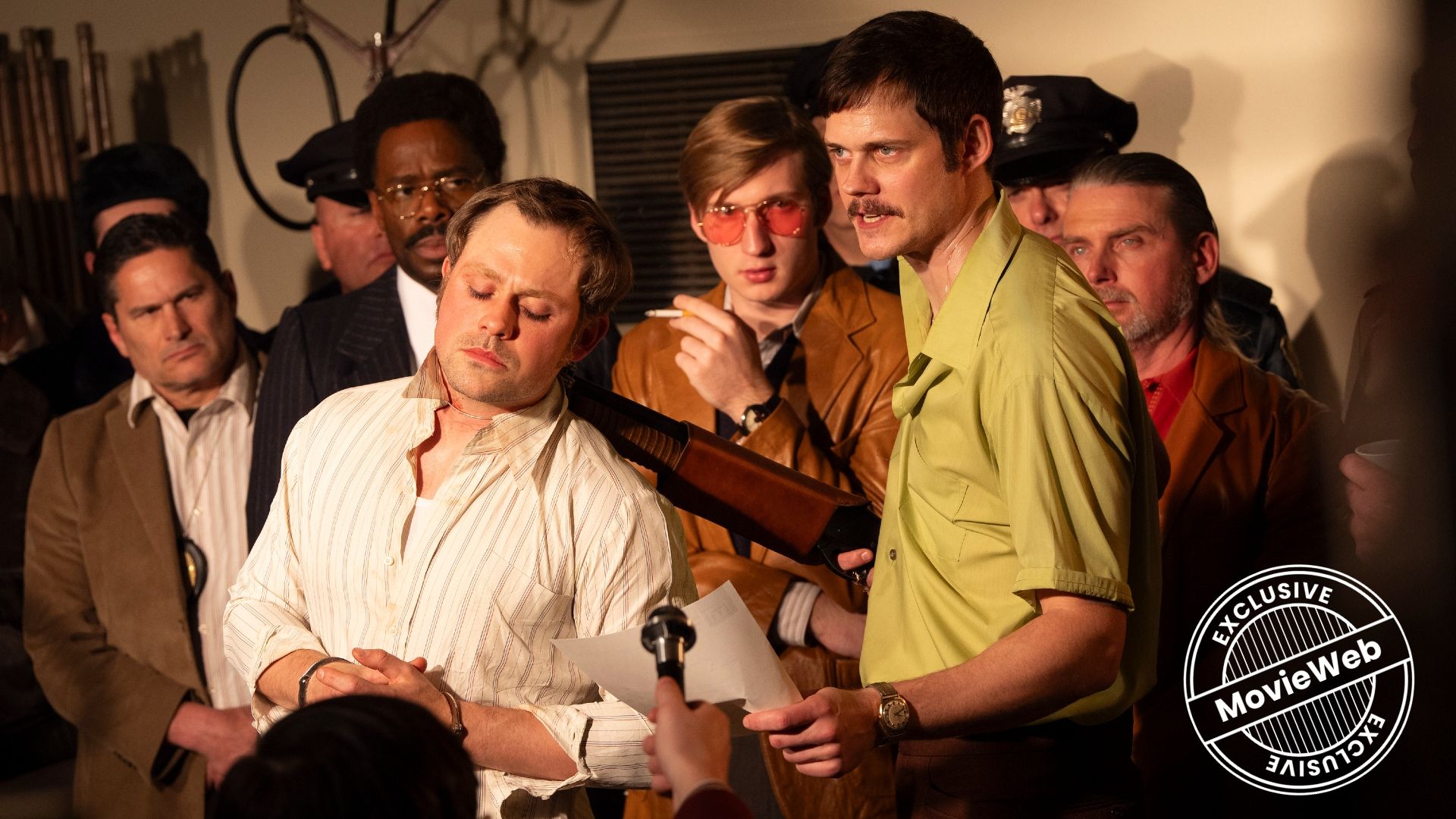 Я помню, как слышал об этом безумном деле из 70-х! Этот парень, Киритсис – которого играет Скарсгард – столкнулся с угрозой потери жилья, и всё просто вышло из-под контроля. Он действительно взял своего агента по недвижимости, Ричарда О. Холла (Монтгомери), в заложники, и, невероятно, прикрепил дробовик к своей голове! Что сделало это еще более странным, так это то, что он звонил на местную радиостанцию во время всего этого, сообщая о происходящем. Это была действительно публичная ситуация с заложниками, и, честно говоря, довольно шокирующая.