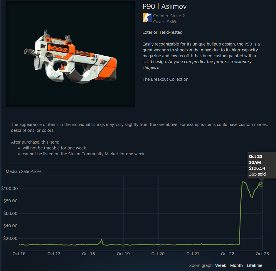 Итак, это недавнее обновление? Оно уже вызывает серьезные колебания цен на Маркетплейсе, и за этим интересно наблюдать! Я проверял Pricempire, и один редкий нож, который продался за более чем $14 000 только вчера, сейчас упал в цене более чем на 50%. С другой стороны, довольно распространенный скин P90 Asimov подскочил с примерно $10 в среду до более чем $100 прямо сейчас. Это безумный сдвиг, и увлекательно наблюдать, как быстро все меняется.