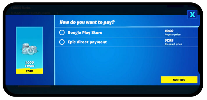 Epic Games оспаривает правило Google, согласно которому разработчики должны использовать Google Play Billing. Новое предложение позволит Google требовать от разработчиков *предлагать* Play Billing в качестве варианта оплаты, но наряду с другими способами оплаты. Важно отметить, что приложения по-прежнему смогут устанавливать свои собственные цены и предлагать скидки клиентам, которые выберут способ оплаты, отличный от Google.
