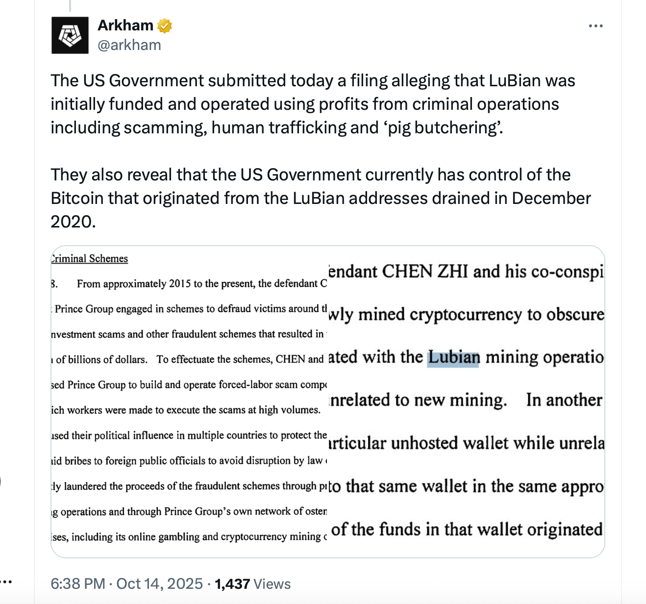 - Почему Lubian.com актуален? Arkham проследил 127 тысяч BTC до Lubian.com, назвав это хакерской атакой прямо из сценария фильма.