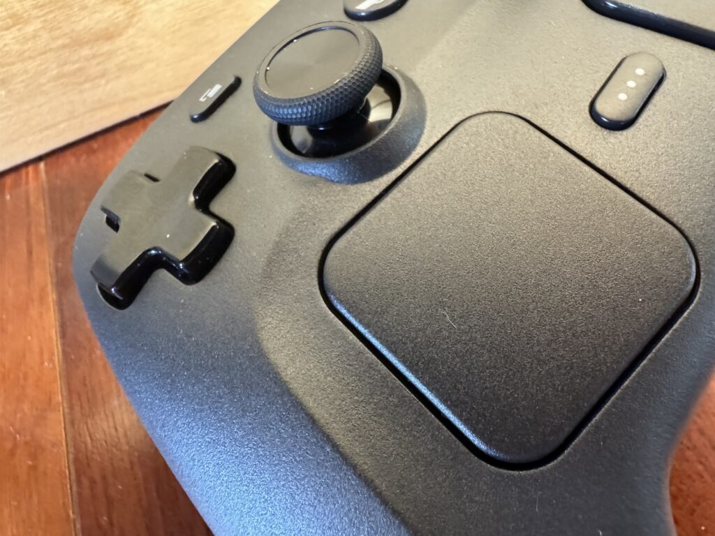 Как аналитик, одним из первых моментов, который бросается в глаза в новом контроллере от Valve, является включение двух сенсорных панелей, расположенных под стиками. Если вы пользовались Steam Deck, они покажутся вам довольно знакомыми. Однако Valve слегка наклонила сенсорные панели внутрь на этом контроллере – дизайнерское решение, которое, по-видимому, направлено на лучшее соответствие естественному углу ваших больших пальцев, когда вы держите контроллер.