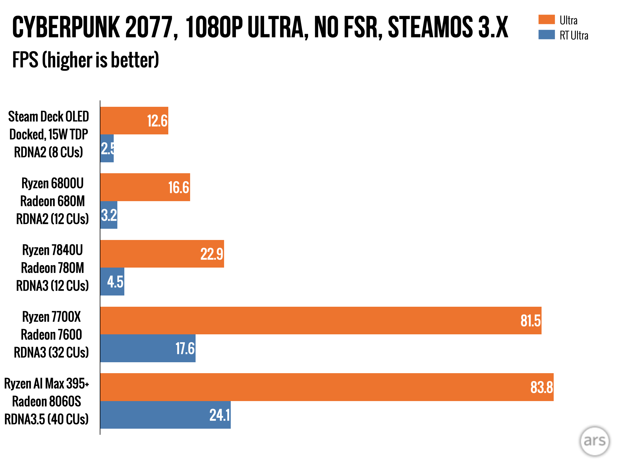 Эта видеокарта, при использовании в небольшом настольном компьютере, может почти удвоить производительность, которую вы получите от Steam Deck, хотя она все еще не настолько мощная, как большинство дискретных видеокарт. Ее производительность сопоставима со стандартным чипом Ryzen Z2, который можно найти в других портативных игровых устройствах. Я также использовал 780M – это тот же графический процессор, который есть в моем настольном компьютере Ryzen 8700G – и он обеспечивает стабильный 1080p гейминг во многих играх.